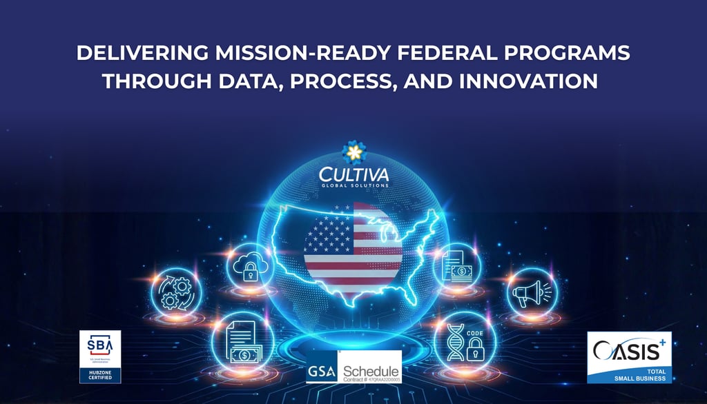 At CULTIVA Global Solutions, we support mission-critical federal programs at the intersection of strategy, data, and execution.